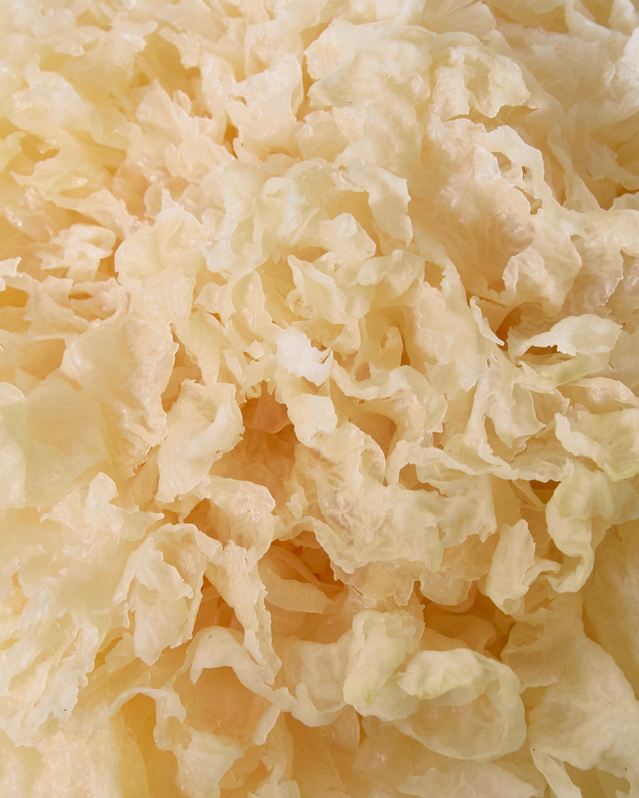 Snow Mushroom Magic: a better source of hyaluronic acid, snow mushroom holds up to 500 times its weight in water, penetrating deeply for long-lasting hydration and improved elasticity.